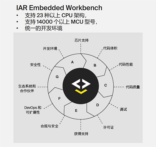 ▶ IAR Embedded Workbench 包含从编辑、编译、调试整个研发生命周期中的各种功能,保证研发人员的沉浸式、不间断开发体验
